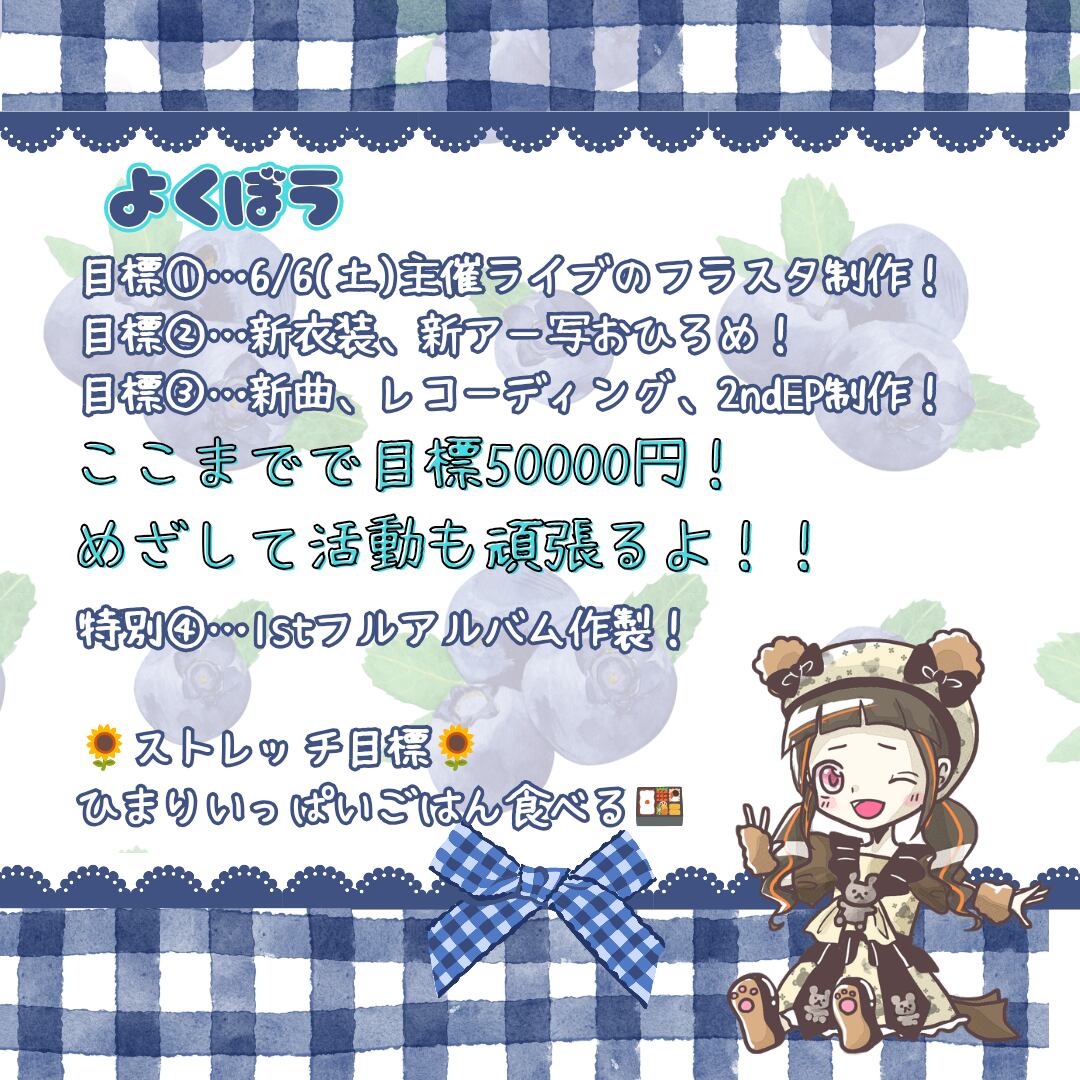 主に6/6(土)の主催ライブに向けた活動費(制作費・衣装・楽曲制作など)に使われます✨